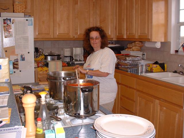 Susan King K5DU was in charge of logistics and meals all weekend. An hour before the start of the contest, the team enjoyed a meal of spaghetti and meat sauce. Susan also operated on 160 meters. |
